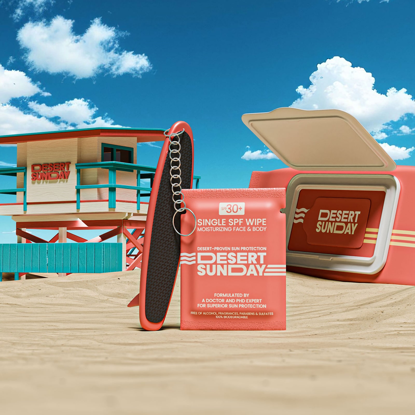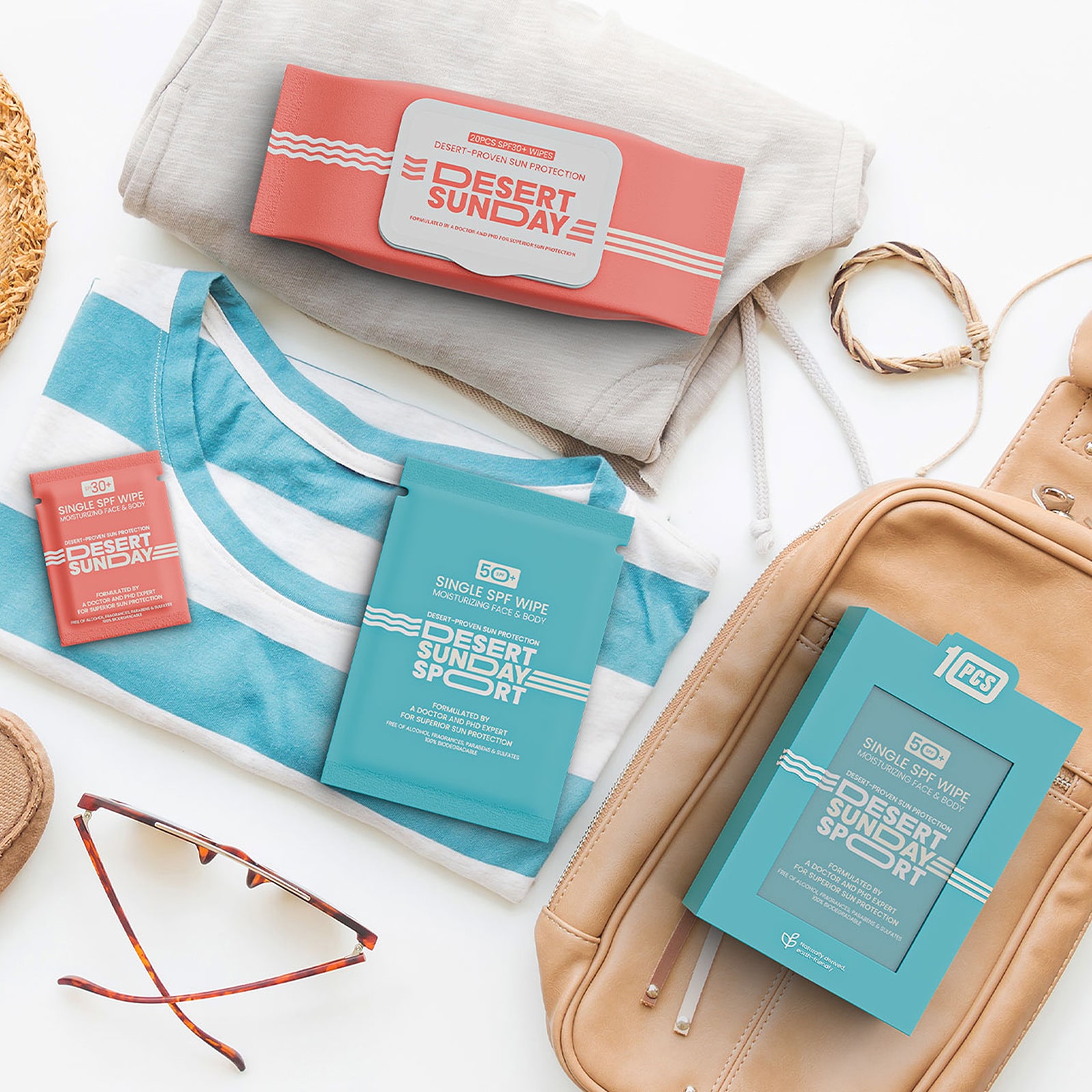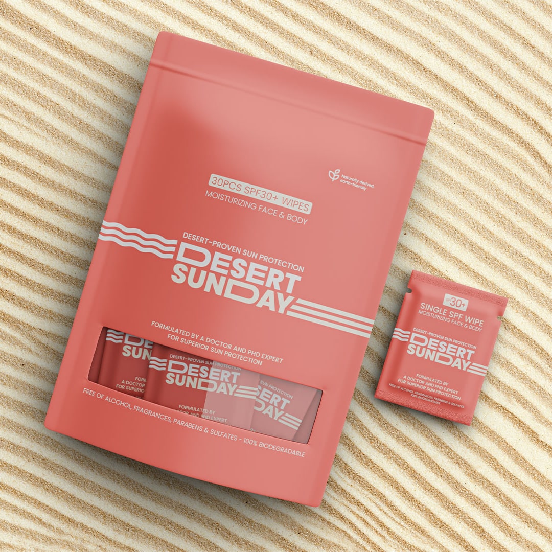 Desert Sunday is an innovative brand of sunscreen wipes with SPF 30, developed by Dr. The product is a revolutionary alternative to traditional creams and sprays.